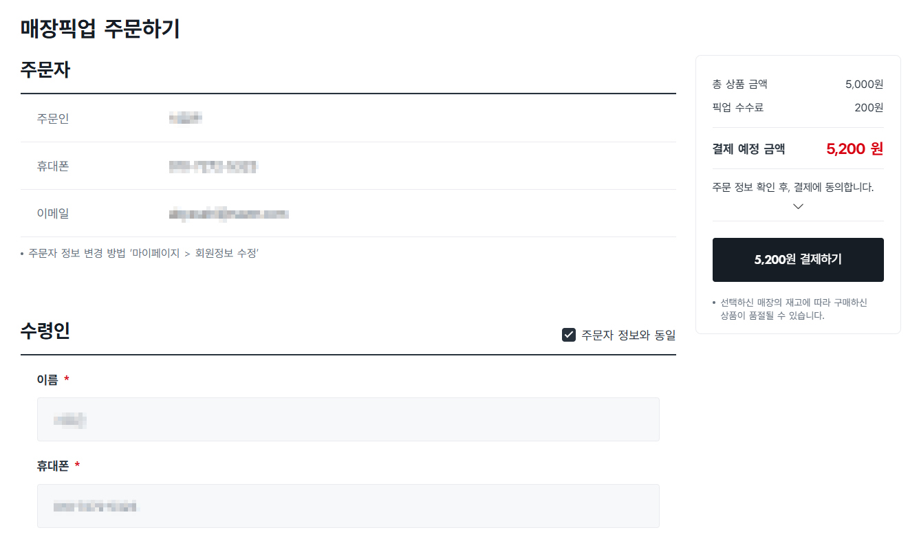 - '매장픽업'을 눌러줍니다.