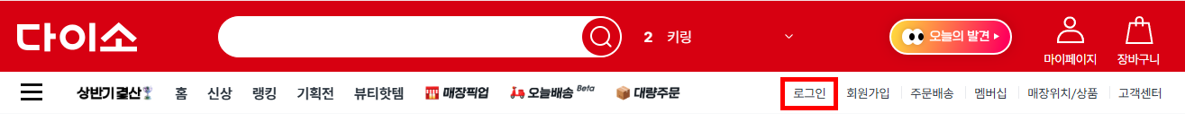 1. 다이소몰에 접속하여 로그인을 해줍니다.