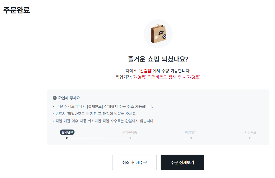 - 지금까지 다이소에서 픽업하는 방법이었습니다.