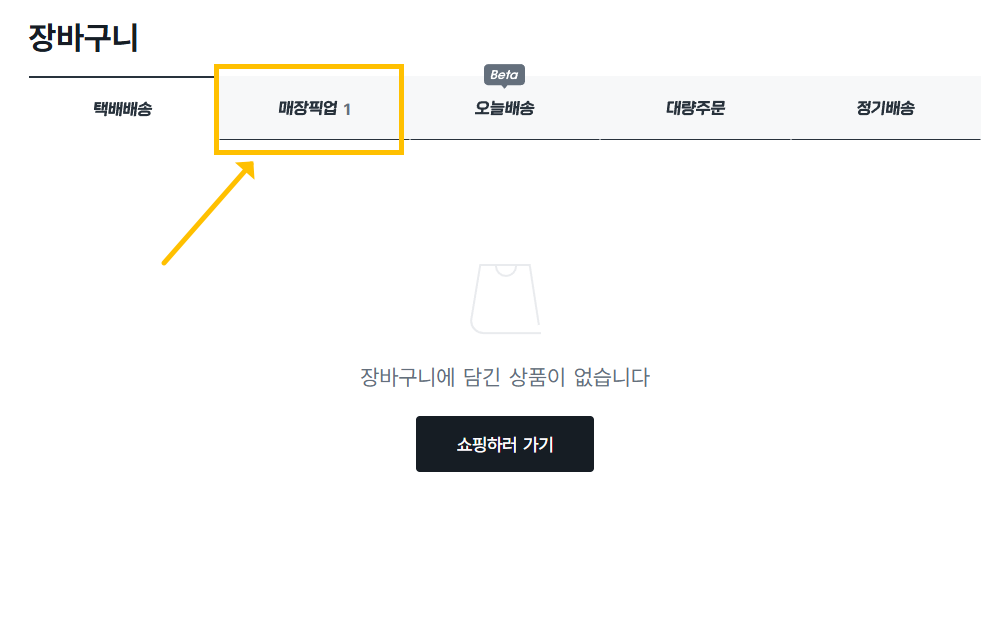 - 중간에 탭들 중에 '매장픽업'에 '1 ' 이라고 보이시죠?